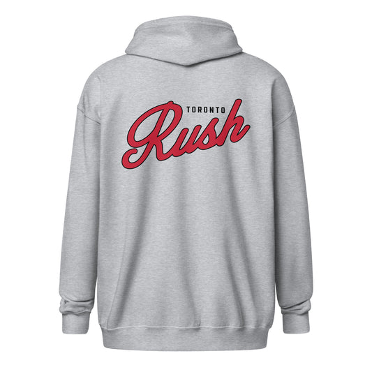 Rush Script Zip Up Hoodie (Back Design)