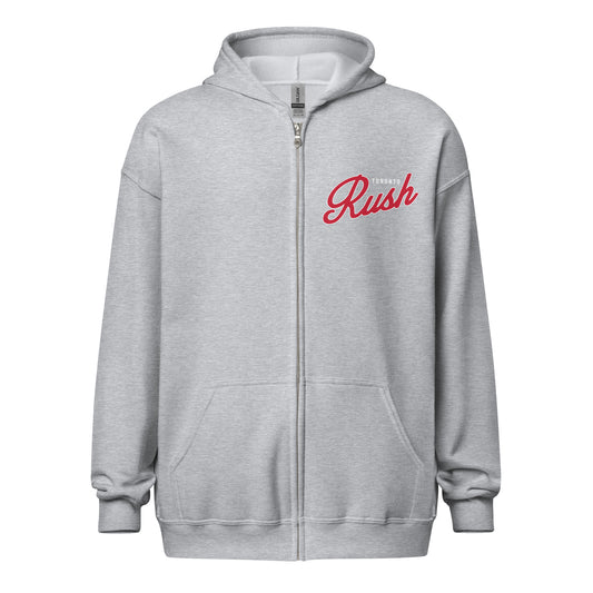 Rush Script Zip Up Hoodie (Front Design)